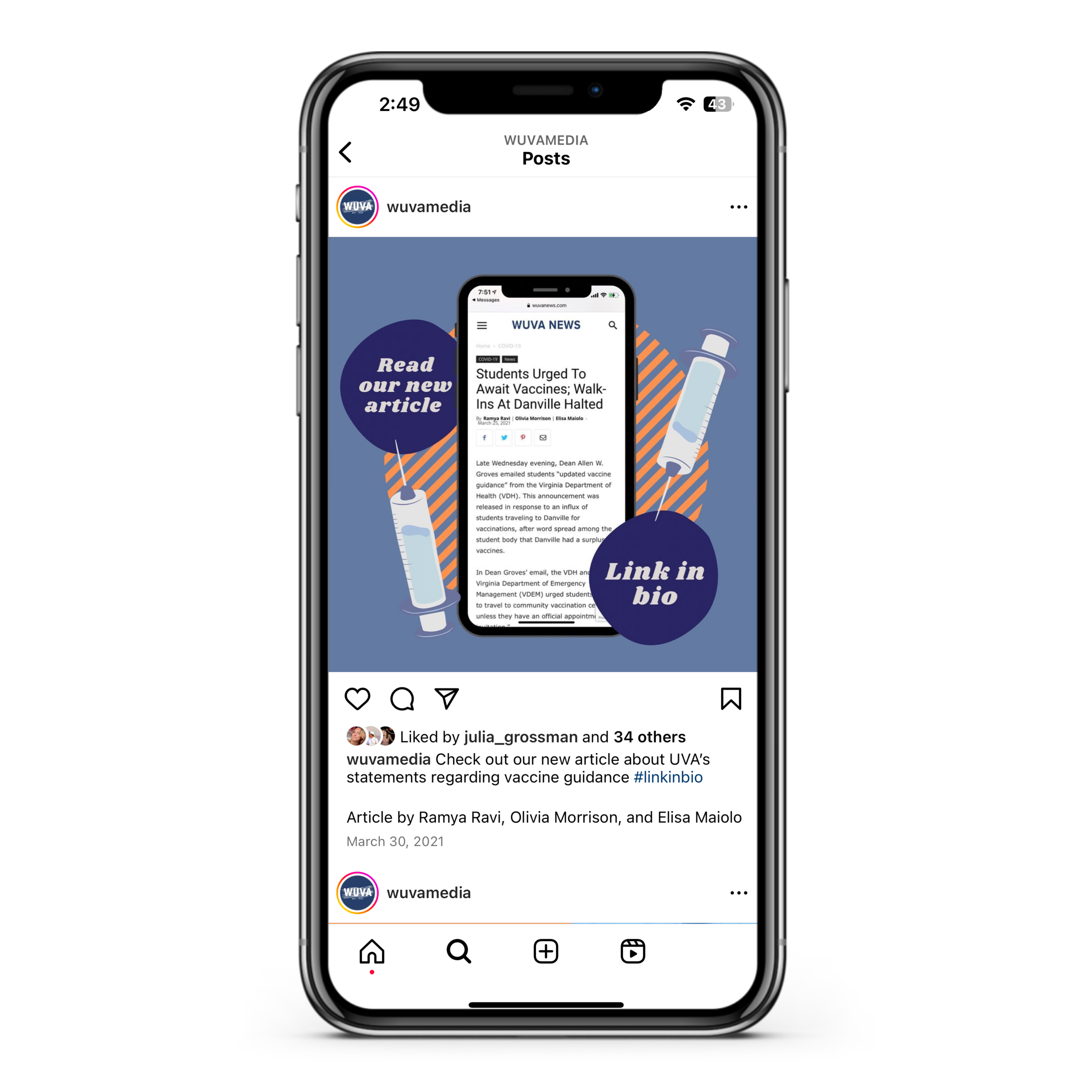 As the Social Media Manager for WUVA, the most prominent news source at the University of Virginia, I spearheaded the creation of visually captivating online content, significantly boosting online article viewership. Taking charge of the marketing department's editorial calendar, I curated digital content for publication with a keen focus on audience engagement. My role extended to leading digital analytics and metrics reporting, allowing for continuous optimization of our content strategy, heightened engagement, and increased visibility for new articles.