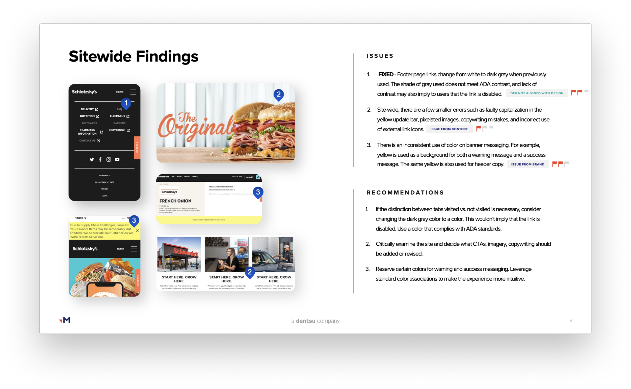 Because of the close collaboration between myself and another UX designer during this analysis, there were a couple instances where one designer would deem a call-out a usability issue and the other would view it as a design choice