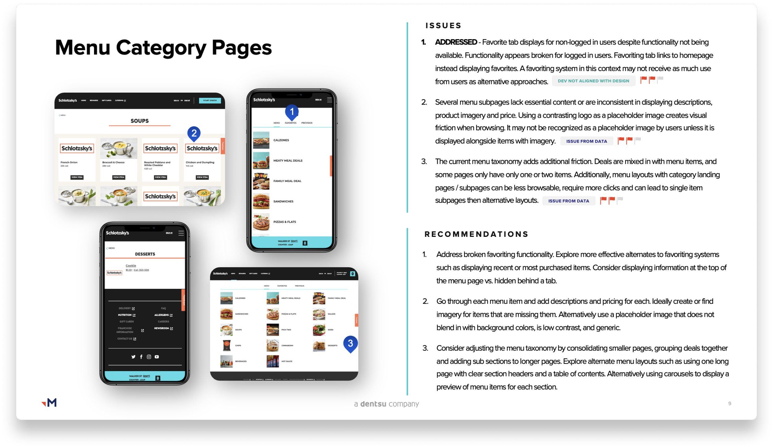 Despite going through a recent site redesign, Schlotzsky’s was still facing issues such as low conversion rates with their mobile ordering flow, high bounce rates on their menu category pages, and negative user feedback regarding the navigation.
